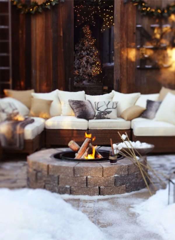 Hoewel de hulst natuurlijk prachtige rode bessen heeft, moet je het tijdens de winter niet hebben van bloeiende bomen en kleurige planten. Daarom is het handig wat (natuurlijk) decoratiemateriaal te verzamelen voor jouw wintertuin. Een typisch wintermateriaal is natuurlijk bont. Een stel eenvoudige kussens van (uiteraard) nepbont in een oude schommelstoel, een bonten kleedje op de veranda en een grote schaal met kaarsen op die oud houten tafel zorgen al voor een echt wintersfeertje. Natuurlijk mag ook de vuurkorf niet ontbreken. ’s Avonds met z’n allen rond het wintervuur moet in onze ‘milde’ winters toch echt kunnen. Leuk idee; als je de vuurkorf niet gebruikt, kun je hem vullen met groene dennentakken, dennenappels, rode besjes en kerstboomlichtjes. Geeft een leuk en gezellig effect tijdens de donkere winterdagen.