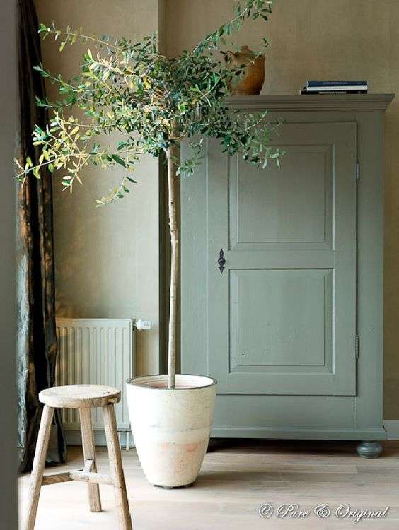 Vind je dit toch wat te heftig dan kun je er altijd voor kiezen een paar woonaccessoires een olijfgroene kleur te geven. Denk aan een oude kast die je nog hebt staan, een leuk krukje of een vakkenkast. Zorg wel dat je de kleur op verschillende plekken terug laat komen in je interieur. Zo zorg je voor eenheid en herkenning.