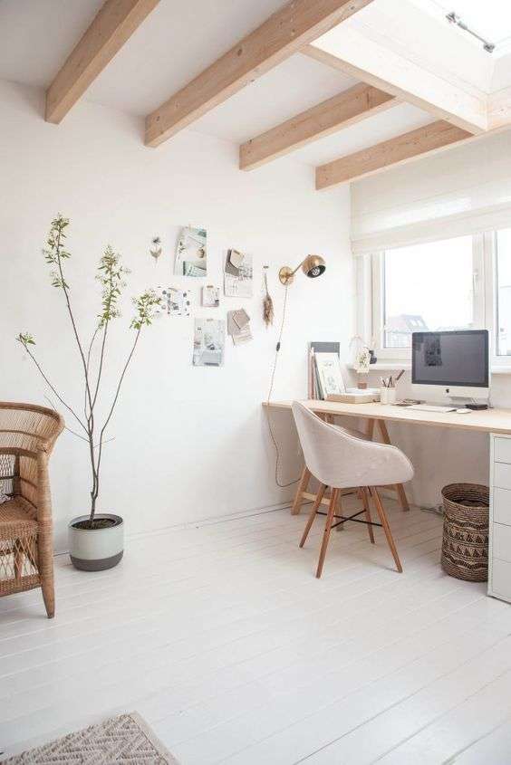Heb je een grote slaapkamer? Die leent zich uitstekend als tijdelijke werkplek. Een mooie tafel doet diens al bureau en een comfortabele stoel neemt de rol van bureaustoel over. Zo stem je de inrichting van je werkplek het mooiste af op de rest van je huis. Voor een kantoorruimte in huis is een zolderkamer een toplocatie! Creëer een werkplek hoog boven de drukte in huis. Probeer de rommel die je hier bewaart zo veel mogelijk op te ruimen en druk je eigen stempel op de ruimte.