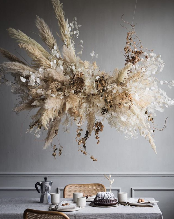 Ik noemde het in mijn vorige blog al; de droogbloemenkrans. Je hebt tegenwoordig echt fantastisch mooie kransen te koop van droogbloemen. Droogbloemen zijn een supercombinatie met linnen trouwens.